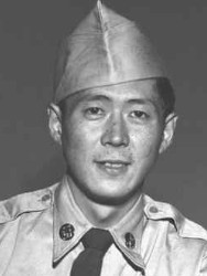 The President of the United States of America, in the name of Congress, takes pleasure in presenting the Medal of Honor to Corporal Hiroshi H. Miyamura (ASN: ER-38584192), United States Army, for conspicuous gallantry and intrepidity above and beyond the call of duty while serving with Company H, 2d Battalion, 7th Infantry Regiment, 3d Infantry Division, in action against enemy aggressor forces at Taejon-ni, Korea, on 24 and 25 April 1951. On the night of 24 April, Company H was occupying a defensive position when the enemy fanatically attacked threatening to overrun the position. Corporal Miyamura, a machinegun squad leader, aware of the imminent danger to his men unhesitatingly jumped from his shelter wielding his bayonet in close hand-to-hand combat killing approximately ten of the enemy. Returning to his position, he administered first aid to the wounded and directed their evacuation. As another savage assault hit the line, he manned his machinegun and delivered withering fire until his ammunition was expended. He ordered the squad to withdraw while he stayed behind to render the gun inoperative. He then bayoneted his way through infiltrated enemy soldiers to a second gun emplacement and assisted in its operation. When the intensity of the attack necessitated the withdrawal of the company Corporal Miyamura ordered his men to fall back while he remained to cover their movement. He killed more than 50 of the enemy before his ammunition was depleted and he was severely wounded. He maintained his magnificent stand despite his painful wounds, continuing to repel the attack until his position was overrun. When last seen he was fighting ferociously against an overwhelming number of enemy soldiers. Corporal Miyamura’s indomitable heroism and consummate devotion to duty reflect the utmost glory on himself and uphold the illustrious traditions on the military service.