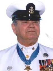 The President of the United States of America, in the name of Congress, takes pleasure in presenting the Medal of Honor to Boatswain’s Mate First Class James Elliott Williams (NSN: 9908934), United States Navy, for conspicuous gallantry and intrepidity at the risk of his life above and beyond the call of duty in action on the Mekong River, Republic of Vietnam, 31 October 1966. Petty Officer First Class Williams was serving as Boat Captain and Patrol Officer aboard River Patrol Boat (PBR) 105, River Section 531, My Tho Detachment, accompanied by another patrol boat when the patrol was suddenly taken under fire by two enemy sampans. Petty Officer First Class Williams immediately ordered the fire returned, killing the crew of one enemy boat and causing the other sampan to take refuge in a nearby river inlet. Pursuing the fleeing sampan, the U.S. patrol encountered a heavy volume of small-arms fire from enemy forces, at close range, occupying well-concealed positions along the river bank. Maneuvering through this fire, the patrol confronted a numerically superior enemy force aboard two enemy junks and eight sampans augmented by heavy automatic weapons fire from ashore. In the savage battle that ensued, Petty Officer First Class Williams, with utter disregard for his safety exposed himself to the withering hail of enemy fire to direct counter-fire and inspire the actions of his patrol. Recognizing the overwhelming strength of the enemy force, Petty Officer First Class Williams deployed his patrol to await the arrival of armed helicopters. In the course of his movement his discovered an even larger concentration of enemy boats. Not waiting for the arrival of the armed helicopters, he displayed great initiative and boldly led the patrol through the intense enemy fire and damaged or destroyed 50 enemy sampans and seven junks. This phase of the action completed, and with the arrival of the armed helicopters, Petty Officer First Class Williams directed the attack on the remaining enemy force. Now virtually dark, and although Petty Officer First Class Williams was aware that his boats would become even better targets, he ordered the patrol boats’ search lights turned on to better illuminate the area and moved the patrol perilously close to shore to press the attack. Despite a waning supply of ammunition the patrol successfully engaged the enemy ashore and completed the rout of the enemy force. Under the leadership of Petty Officer First Class Williams, who demonstrated unusual professional skill and indomitable courage throughout the three hour battle, the patrol accounted for the destruction or loss of 65 enemy boats and inflicted numerous casualties on the enemy personnel. His extraordinary heroism and exemplary fighting spirit in the face of grave risks inspired the efforts of his men to defeat a larger enemy force, and are in keeping with the finest traditions of the U.S. Naval Service.