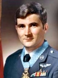 The President of the United States of America, in the name of Congress, takes pleasure in presenting the Medal of Honor to Sergeant [then Airman First Class] John Lee Levitow, United States Air Force, for conspicuous gallantry and intrepidity in action at the risk of his life above and beyond the call of duty serving with the 3d Special Operations Squadron, 14th Special Operations Wing, in the air over Long Binh Army Post, Republic of Vietnam, on 24 February 1969. Sergeant Levitow, U.S. Air Force, distinguished himself by exceptional heroism while assigned as a loadmaster aboard an AC-47 aircraft flying a night mission in support of Long Binh Army post. Sergeant Levitow’s aircraft was struck by a hostile mortar round. The resulting explosion ripped a hole two feet in diameter through the wing and fragments made over 3,500 holes in the fuselage. All occupants of the cargo compartment were wounded and helplessly slammed against the floor and fuselage. The explosion tore an activated flare from the grasp of a crewmember who had been launching flares to provide illumination for Army ground troops engaged in combat. Sergeant Levitow, though stunned by the concussion of the blast and suffering from over 40 fragment wounds in the back and legs, staggered to his feet and turned to assist the man nearest to him who had been knocked down and was bleeding heavily. As he was moving his wounded comrade forward and away from the opened cargo compartment door, he saw the smoking flare ahead of him in the aisle. Realizing the danger involved and completely disregarding his own wounds, Sergeant Levitow started toward the burning flare. The aircraft was partially out of control and the flare was rolling wildly from side to side. Sergeant Levitow struggled forward despite the loss of blood from his many wounds and the partial loss of feeling in his right leg. Unable to grasp the rolling flare with his hands, he threw himself bodily upon the burning flare. Hugging the deadly device to his body, he dragged himself back to the rear of the aircraft and hurled the flare through the open cargo door. At that instant the flare separated and ignited in the air, but clear of the aircraft. Sergeant Levitow, by his selfless and heroic actions, saved the aircraft and its entire crew from certain death and destruction. Sergeant Levitow’s gallantry, his profound concern for his fellowmen, at the risk of his life above and beyond the call of duty are in keeping with the highest traditions of the U.S. Air Force and reflect great credit upon himself and the Armed Forces of his country.