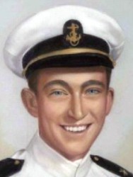 The President of the United States of America takes pride in presenting the Navy Cross (Posthumously) to Ensign Dale William Peterson (NSN: 0-85948), United States Navy, for extraordinary heroism in operations against the enemy while serving as Pilot of a carrier-based Navy Fighter Plane in Fighting Squadron THREE (VF3), attached to the U.S.S. LEXINGTON (CV-2), in action against enemy forces in the Pacific War Area when his ship was attacked by eighteen Japanese bombing planes on 20 February 1942. In the face of heavy anti-aircraft fire, Ensign Peterson intercepted a formation of nine enemy aircraft and succeeded in shooting down one twin-engine bomber and aided in shooting down another. Ensign Peterson’s outstanding courage, daring airmanship and devotion to duty were in keeping with the highest traditions of the United States Naval Service.