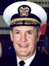 Under the provisions of Department of Defense 1348.33-M, the Secretary of Defense of the United States of America takes pleasure in presenting the Defense Superior Service Medal to Rear Admiral Edward Holmes Martin (NSN: 0-58487), United States Navy, for exceptionally superior service as Chief, Current Operations Division, Director for Operations on the Staff of the Commander in Chief, Pacific, From September 1979 through October 1980. Subsequent to the American Embassy in Teheran, Iran being seized by militants, Rear Admiral Martin was tasked to be the personal representative and liaison between the Commander in Chief Pacific and the Chairman of the Joint Chiefs of Staff and was instrumental in developing vitally important military options to deal with the situation. His analyses and recommendations were accepted by the highest military and civilian decision makers, and he was pivotal in the establishment of rules of engagement for United States Forces. Concurrently, he was key to the exceptionally successful Pacific Command Vietnamese refugee actions which resulted in the rescue of more than 2,000 people. Rear Admiral Martin’s expertise and superb managerial skills were essential to the effective planning and coordinating of Pacific Command operational requirements while maintaining maximum capability to respond to additional National Command Authority requirements concerning the Iranian crisis. The distinctive accomplishments of Rear Admiral Martin reflects great credit upon himself, the United States Navy, and the Department of Defense.