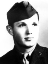 The President of the United States of America, in the name of Congress, takes pride in presenting the Medal of Honor (Posthumously) to Corporal Tony Stein, United States Marine Corps Reserve, for conspicuous gallantry and intrepidity at the risk of his life above and beyond the call of duty while serving with Company A, First Battalion, Twenty-Eighth Marines, FIFTH Marine Division, in action against enemy Japanese forces on Iwo Jima, in the Volcano Islands, 19 February 1945. The first man of his unit to be on station after hitting the beach in the initial assault, Corporal Stein, armed with a personally improvised aircraft-type weapon, provided rapid covering fire as the remainder of his platoon attempted to move into position. When his comrades were stalled by a concentrated machinegun and mortar barrage, he gallantly stood upright and exposed himself to the enemy’s view, thereby drawing the hostile fire to his own person and enabling him to observe the location of the furiously blazing hostile guns. Determined to neutralize the strategically placed weapons, he boldly charged the enemy pillboxes one-by-one and succeeded in killing 20 of the enemy during the furious single-handed assault. Cool and courageous under the merciless hail of exploding shells and bullets which fell on all sides, he continued to deliver the fire of his skillfully improvised weapon at a tremendous rate of speed which rapidly exhausted his ammunition. Undaunted, he removed his helmet and shoes to expedite his movements and ran back to the beach for additional ammunition, making a total of eight trips under intense fire and carrying or assisting a wounded man back each time. Despite the unrelenting savagery and confusion of battle, he rendered prompt assistance to his platoon whenever the unit was in position, directing the fire of a half-track against a stubborn pillbox until he had effected the ultimate destruction of the Japanese fortification. Later in the day, although his weapon was twice shot from his hands, he personally covered the withdrawal of his platoon to the company position. Stouthearted and indomitable, Corporal Stein, by his aggressive initiative sound judgment, and unwavering devotion to duty in the face of terrific odds, contributed materially to the fulfillment of his mission, and his outstanding valor throughout the bitter hours of conflict sustains and enhances the highest traditions of the U.S. Naval Service.