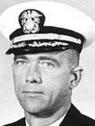 The President of the United States of America takes pride in presenting the Distinguished Flying Cross (Posthumously) to Commander John Clement Mape (NSN: 0-512931), United States Navy, for extraordinary achievement while participating in aerial flight as a Pilot in Attack Squadron FIFTY-TWO (VA-52), embarked in U.S.S. TICONDEROGA (CVA-14), on 12 November 1965. As flight leader of a flight of attack aircraft, Commander Mape provided close air support for surrounded elements of the 3d Brigade, 1st Infantry Division, U.S. Army, during the Battle of Bau Bang, Republic of Vietnam. In the face of heavy enemy automatic weapons fire, he led his flight in repeated bombing and strafing attacks against the Viet Cong. The intensity of these attacks and the determination with which they were executed resulted in heavy casualties for the Viet Cong, which broke the impetus of their attack. Commander Mape’s courage throughout this action was in keeping with the highest traditions of the United States Naval Service.