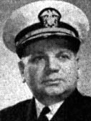 The President of the United States of America takes pleasure in presenting a Gold Star in lieu of a Second Award of the Navy Distinguished Service Medal to Rear Admiral Ralph Eugene Davison, United States Navy, for exceptionally meritorious and distinguished service in a position of great responsibility to the Government of the United States as commander of a task group operating against Japanese forces in the forward areas of the Pacific from 10 February to 21 March 1945. Admiral Davison was courageous and daring, gallantly leading his command in vigorous support of the landing operation at Iwo Jima. He participated in the first carrier attacks on the Japanese homeland, deploying the units of his task group for maximum combat efficiency and inflicting heavy damage on hostile airfields and installations. When his flagship, the U.S.S. FRANKLINH, suffered damage under aerial attack on 18 – 19 March, Rear Admiral Davison carried on with consistent determination and aggressiveness, maintaining operations despite numerous casualties in his staff. Although forced to transfer to another ship, he rendered distinctive and valiant service throughout the desperate struggle to save the FRANKLIN.