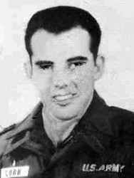 The President of the United States of America, authorized by Act of Congress, July 9, 1918 (amended by act of July 25, 1963), takes pride in presenting the Distinguished Service Cross (Posthumously) to Sergeant First Class Hubbard Don Cobb (ASN: RA-18533582), United States Army, for extraordinary heroism in connection with military operations involving conflict with an armed hostile force in the Republic of Vietnam, while serving with Company A, 2d Battalion, 5th Cavalry, 1st Cavalry Division. Platoon Sergeant Cobb distinguished himself by exceptionally valorous actions on 14 January 1968 while leading his platoon in an attack near Dai Luong. A scout helicopter, performing a reconnaissance at Sergeant Cobb’s request, made contact with elements of a Viet Cong regiment in a rock and cave complex in which the platoon was operating. Sergeant Cobb deployed his troops for an assault and immediately received sporadic but deadly rifle and grenade fire. The initial burst wounded the two point men. Sergeant Cobb quickly directed counter fire which accounted for two enemy dead. He then placed himself on the point as the platoon maneuvered around a series of openings in the rocks. Sergeant Cobb spent the next hour creeping forward to hurl explosive charges into the caves. Disregarding his safety, he repeatedly engaged the enemy, personally killing three Viet Cong. At dusk, as he was approaching a cave, an enemy soldier suddenly appeared and, with a burst of automatic rifle fire, mortally wounded Sergeant Cobb. Although he was dying, Sergeant Cobb assaulted the position carrying an explosive charge and plunged headfirst into the hole, killing his foe in the resulting blast. Platoon Sergeant Cobb’s extraordinary heroism and devotion to duty, at the cost of his life, were in keeping with the highest traditions of the military service and reflect great credit upon himself, his unit, and the United States Army.