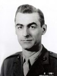 The President of the United States of America takes pleasure in presenting the Navy Cross to Lieutenant Colonel Robert Donald Taplett (MCSN: 0-6678), United States Marine Corps, for extraordinary heroism in connection with military operations against an armed enemy of the United Nations while serving as Commanding Officer of the Third Battalion, Fifth Marines, FIRST Marine Division (Reinforced), in action against enemy aggressor forces in the Republic of Korea from 28 November to 10 December 1950. When a vastly outnumbering hostile force attacked his Battalion assembly area northwest of Yudam-ni during the pre-dawn hours of 28 November, Lieutenant Colonel Taplett remained steadfast in the midst of heavy fire and bursting grenades as the enemy penetrated to within ten yards of the command post, maintaining communications with and directing the fire of two of his companies which were also under attack and directing the third reserve company in delivering a brilliantly executed counterattack to repel the onslaught in all sectors before daybreak. Assigned, on 1 December, to break the enemy’s main line of resistance which controlled the principal supply route of entrapped Marine units near Yudam-ni, he placed himself in a forward position to observe and control operations and, although he was knocked to the ground by mortar fire on one occasion, and subjected to continuous small-arms and artillery fire throughout two days of intensive action, succeeded in driving the enemy from the area, thereby enabling the FIRST Marine Division to remove all troops, casualties, equipment and supplies in safety. With the Division train cut in half by hostile fire during the march from Hagaru-ri to Koto-ri on 7 December, and the rear elements unable to advance for a period of more than ten hours, Lieutenant Colonel Taplett moved two miles to the head of the convoy under heavy fire and, effecting a skillful reorganization, started the train moving, at the same time supervising his own Battalion in offensive neutralizing action against the strongpoint. Later the same day when the enemy struck the rear echelon in estimated battalion strength, he again left his position and braved the intense fire to analyze the situation. Promptly calling for air strikes, bringing his own supportive fire to bear and maneuvering two rifle companies into action, he conducted a devastating offensive to annihilate the attackers and enable the Marine units to reach their destination without further opposition. By his inspiring leadership, forceful combat tactics and gallant fighting spirit maintained against staggering odds, Lieutenant Colonel Taplett contributed to the success of his Battalion in accounting for more than 2,000 of the enemy with a total of only 117 in his own ranks. His fortitude and devotion to duty throughout the bitterly fought twelve-day battle reflect the highest credit upon himself and the United States Naval Service.