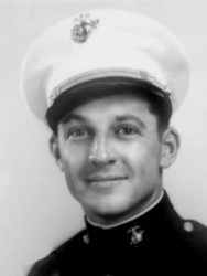 The President of the United States of America takes pride in presenting the Navy Cross (Posthumously) to Major Lofton Russell Henderson (MCSN: 0-4084), United States Marine Corps, for extraordinary heroism and distinguished service in the line of his profession while serving as Squadron Commander and a Pilot in Marine Scout-Bombing Squadron TWO HUNDRED FORTY-ONE (VMSB-241), Marine Air Group TWENTY-TWO (MAG-22), Naval Air Station, Midway, during operations of the U.S. Naval and Marine Forces against the invading Japanese Fleet during the Battle of Midway on 4 June 1942. With utter disregard for his own personal safety, Major Henderson, with keen judgment and courageous aggressiveness in the face of strong enemy fighter opposition, led his squadron in an attack which contributed materially to the defeat of the enemy. He was subsequently reported as missing it action. It is believed he gallantly gave up his life in the service of his country.