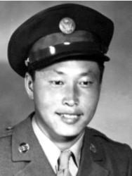 The President of the United States of America, in the name of Congress, takes pleasure in presenting the Medal of Honor to Private George Taro Sakato (ASN: 39923340), United States Army, for conspicuous gallantry and intrepidity in action above and beyond the call of duty while serving with Company E, 2d Battalion, 442d Regimental Combat Team, attached to the 36th Infantry Division, in action against the enemy on 29 October 1944, at Hill 617 in the vicinity of Biffontaine, France. After his platoon had virtually destroyed two enemy defense lines, during which he personally killed five enemy soldiers and captured four, his unit was pinned down by heavy enemy fire. Disregarding the enemy fire, Private Sakato made a one-man rush that encouraged his platoon to charge and destroy the enemy strongpoint. While his platoon was reorganizing, he proved to be the inspiration of his squad in halting a counter-attack on the left flank during which his squad leader was killed. Taking charge of the squad, he continued his relentless tactics, using an enemy rifle and P-38 pistol to stop an organized enemy attack. During this entire action, he killed 12 and wounded two, personally captured four and assisted his platoon in taking 34 prisoners. By continuously ignoring enemy fire, and by his gallant courage and fighting spirit, he turned impending defeat into victory and helped his platoon complete its mission. Private Sakato’s extraordinary heroism and devotion to duty are in keeping with the highest traditions of military service and reflect great credit on him, his unit, and the United States Army.