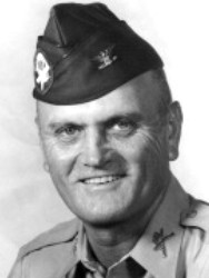 The President of the United States of America, in the name of Congress, takes pleasure in presenting the Medal of Honor to Captain (Infantry), [then First Lieutenant] Jack LeMaster Treadwell (ASN: 0-1703018), United States Army, for conspicuous gallantry and intrepidity in action above and beyond the call of duty on 18 March 1945, while serving with Company F, 180th Infantry Regiment, 45th Infantry Division. Captain Treadwell, commanding officer of Company F, near Nieder-Wurzbach, Germany, in the Siegfried line, single-handedly captured six pillboxes and 18 prisoners. Murderous enemy automatic and rifle fire with intermittent artillery bombardments had pinned down his company for hours at the base of a hill defended by concrete fortifications and interlocking trenches. Eight men sent to attack a single point had all become casualties on the hard slope when Captain Treadwell, armed with a submachine gun and hand grenades, went forward alone to clear the way for his stalled company. Over the terrain devoid of cover and swept by bullets, he fearlessly advanced, firing at the aperture of the nearest pillbox and, when within range, hurling grenades at it. He reached the pillbox, thrust the muzzle of his gun through the port, and drove four Germans out with their hands in the air. A fifth was found dead inside. Waving these prisoners back to the American line, he continued under terrible, concentrated fire to the next pillbox and took it in the same manner. In this fort he captured the commander of the hill defenses, whom he sent to the rear with the other prisoners. Never slackening his attack, he then ran across the crest of the hill to a third pillbox, traversing this distance in full view of hostile machine gunners and snipers. He was again successful in taking the enemy position. The Germans quickly fell prey to his further rushes on three more pillboxes in the confusion and havoc caused by his whirlwind assaults and capture of their commander. Inspired by the electrifying performance of their leader, the men of Company F stormed after him and overwhelmed resistance on the entire hill, driving a wedge into the Siegfried line and making it possible for their battalion to take its objective. By his courageous willingness to face nearly impossible odds and by his overwhelming one-man offensive, Captain Treadwell reduced a heavily fortified, seemingly impregnable enemy sector.