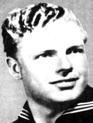 The President of the United States of America, in the name of Congress, takes pride in presenting the Medal of Honor (Posthumously) to Seaman First Class Johnnie David Hutchins, United States Naval Reserve, for extraordinary heroism and conspicuous valor above and beyond the call of duty while serving on board a Landing Ship Tank (LST-473), during the assault on Lae, New Guinea, 4 September 1943. As the ship on which Seaman First Class Hutchins was stationed approached the enemy-occupied beach under a veritable hail of fire from Japanese shore batteries and aerial bombardment, a hostile torpedo pierced the surf and bore down upon the vessel with deadly accuracy. In the tense split seconds before the helmsman could steer clear of the threatening missile, a bomb struck the pilot house, dislodged him from his station, and left the stricken ship helplessly exposed. Fully aware of the dire peril of the situation, Seaman First Class Hutchins, although mortally wounded by the shattering explosion, quickly grasped the wheel and exhausted the last of his strength in maneuvering the vessel clear of the advancing torpedo. Still clinging to the helm, he eventually succumbed to his injuries, his final thoughts concerned only with the safety of his ship, his final efforts expended toward the security of his mission. He gallantly gave his life in the service of his country.