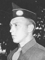 The President of the United States of America, authorized by Act of Congress, July 9, 1918, takes pleasure in presenting the Distinguished Service Cross to Private First Class Milo C. Huempfner (ASN: 16091778), United States Army, for extraordinary heroism in connection with military operations against an armed enemy while serving with Headquarters and Headquarters Company, 551st Parachute Infantry Battalion, attached to the 82d Airborne Division, in action against enemy forces on 23 and 24 December 1944, in Belgium. Private First Class Huempfner, on 23 December 1944 elected to remain in Leignon, Belgium after its capture by German armored elements despite the fact that he had not been ordered to do so. His harassing actions within the city during the entire time it was occupied by the German forces, at great risk to his life, resulted in the loss to the Germans of two half-tracks, a machine gun position and a German officer and two enlisted men. His prompt action in warning allied forces of the presence of this German force prevented the loss of many allied vehicles and the loss of lives of American soldiers. Private First Class Huempfner’s extraordinary heroism, personal bravery and zealous devotion to duty exemplify the highest traditions of the military forces of the United States and reflect great credit upon himself, the 82d Airborne Division, and the United States Army.