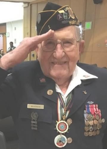 The President of the United States of America, authorized by Act of Congress, July 9, 1918, takes pleasure in presenting the Distinguished Service Cross to Private First Class William J. McKenzie (ASN: 33379823), United States Army, for extraordinary heroism in connection with military operations against an armed enemy while serving with Company H, 2d Battalion, 319th Infantry Regiment, 80th Infantry Division, in action against enemy forces on 29 December 1944. On that date, the enemy launched a strong counter-attack at Ringel, Luxembourg, threatening the Command Post of Company H, 2d Battalion, 319th Infantry. Private McKenzie courageously held his position at the Command Post; killed three of the enemy, wounded five and forced the remainder to seek shelter in a nearby barn. He then ran to the barn and forced sixteen of the enemy to surrender. Later, when this intrepid soldier observed an enemy rocket-launcher team in firing position he crawled within grenade throwing distance and repulsed the attack by killing two of the team and wounding another. The conspicuous heroism Private First Class McKenzie repeatedly displayed and his courageous determination and loyal devotion to duty exemplify the highest traditions of the military forces of the United States and reflect great credit upon himself, the 80th Infantry Division, and the United States Army.