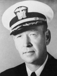 The President of the United States of America takes pleasure in presenting the Navy Cross to Captain George Arthur T. Washburn (NSN: 0-58272), United States Navy, for extraordinary heroism and distinguished service in the line of his profession as Commanding Officer of the Escort Carrier U.S.S. LUNGA POINT (CVE-94), in action against enemy Japanese forces at Okinawa, on 2 April 1945. Quick to act when at least six enemy suicide fighters executed a well-coordinated attack against his ship, Captain Washburn skillfully maneuvered the LUNGA POINT at high speed to bring maximum fire to bear on all attackers, enabling his well-trained gun crews to assist in the destruction of three planes. By his excellent ship handling, cool courage in the face of seemingly certain hits, he was primarily responsible for the failure of the enemy to inflict damage on his ship, and contributed materially to the safety of accompanying vessels. His indomitable fighting spirit, leadership and devotion to duty were in keeping with the highest traditions of the United States Naval Service.
